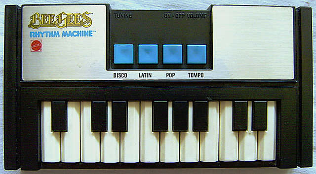 The rhythm patterns are fairly complex and rather constitute a monophonic fixed- key accompaniment, but they can be set to only 3 speeds. Turning volume louder distorts the conga envelope from a percussive sound into a rather constant squarewave toot, which is nice for tekkno. The manual of the instrument contains score and lyrics for several songs of the rock band BeeGees.