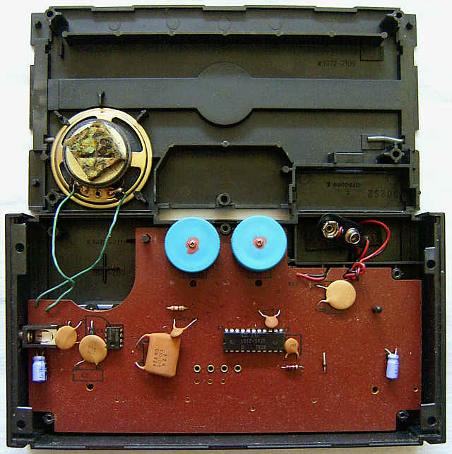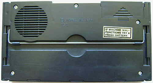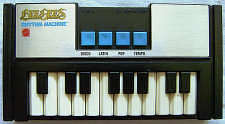 This rare toy keyboard from 1978 (embossed case bottom copyright) has 3 nice melodic squarewave rhythms with crunchy POKEY hihat. The monophonic main voice is a simple clarinet tone.
