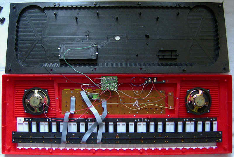 The instruction manual is full of gibberish Engrish misspellings and contains partly wrong information. E.g. in claims there would be the features: "Chord/ Tremolo/ Portamento/ Infix/ Bass effect" although there is definitely neither portamento (glide tones) nor tremolo, and the meaning of "Infix" makes also no sense. Perhaps they meant with "Infix / Bass effect" on the box simply that during accompaniment the bass can only sound between chord notes instead of simultaneously to save polyphony, but in the manual is in the section "Automatic bass chord:" the confusing instruction: "C, when chord being played, press chord key or bass key to change the timbre, press infix key to improve timbre, or press normal key to cancel." Bizarre is that the 2 jacks on the back are labelled "speakers" and "phones" despite according to the manual the "phones" one should be a microphone jack. Like with other Yongmei/ Miles keyboards, also here the manual has schematics on its back, but unfortunately here the keys and buttons in the keyboard matrix are not labelled at all, thus it is no help to identify keyboard matrix eastereggs.