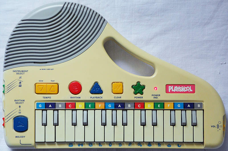 This monophonic toy keyboard from 1993 has nice POKEY rhythm and many sound similarities with the great Hing Hon EK-001. Unfortunately only 3 rhythms can be selected by hand, despite its demo tunes contain many additional rhythms.