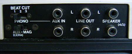 jacks for 2 speakers, line out, AUX in (switchable to phono in), 2 microphones
