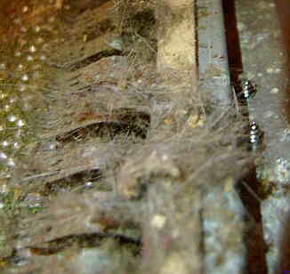 of caked dust and animal hairs inside, a loose metal part from the cassette
