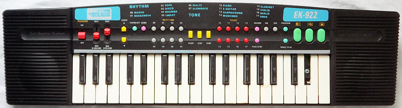 Unfortunately my EK-922 specimen (from fleamarket) is completely brain dead; it makes no sound anymore and only the CPU runs very hot (like my initially as dead and quite similar Fujiyama KS-37 - likely the previous owner confused power supply polarity), thus I don't know how it had sounded.