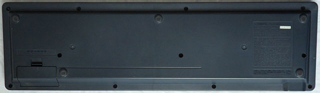 The drum pattern programming works here different from the "custom drummer" of the MC-3 and rather resembles the Elta KE-6. You have to select one of the preset rhythms as a template and press the "program" button which makes an empty rhythm repeats in a loop while a closed cymbal goes as a metronome (which is not recorded). Then you can now add additional percussion in realtime with the rightmost 5 white keyboard keys. (The pattern length depends on the selected rhythm.) You can delete the current pattern by pressing "program" again. The programming mode can in a limited way also be abused as a realtime tekkno drum computer and unlike the Elta KE-6 you can even play keyboard(!) during this on the remaining keys (with or without accompaniment). The pattern resolution depends on the selected rhythm and is high enough to get bizarre and complex "tribal" drum loops out of it. After finishing programming (press "stop"), the user pattern can be played by pressing "play". (The accompaniment of the user pattern can not be changed afterward, because starting the pattern with a different rhythm switches the accompaniment back to the one of the rhythm it was recorded with.) When "play" is pressed without recording (or after deleting) a user pattern, the instrument turns rhythm off and switches the rightmost keys into drumpad mode. Interesting is that although sound selection of this instrument is in no way OBS, you can play on the keyboard with rhythm and accompaniment, then program (and delete) in realtime a new user pattern and switch back and forward between the user and the default rhythm pattern all without stopping the accompaniment.