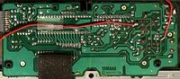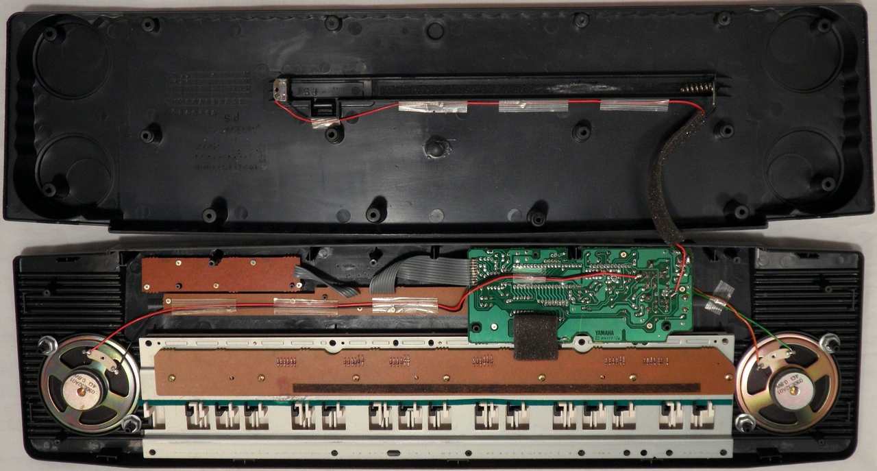 I haven't tested anything of these by myself, but Traktor told me by e-mail about this. The Yamaha PSR-18 has 'echo' and 'reverb' instead of 'volume -' and 'volume +' and supports 61 keys by additional matrix output pins 15..17. fingered accompaniment In Yamaha PSR-3 the power/mode slide switch {off, normal, single finger, fingered} can also select fingered accompaniment. This locking 4 position switch pulls in 'single finger' mode cpu pin 33 (N6), and in 'fingered chord' mode cpu pin 34 (N7) through each a 2.2k resistor to GND. In 'normal' mode it is open, and in 'off' mode it disconnects power by pulling the base of a transistor to GND. Thus install a locking switch with 2.2k resistor from pin 34 to GND to enable it. It may be a good idea to wire here a 2 position switch in series to the single finger chord contact to make it select between pin 33 and 34. keyboard length, octave switch, key split position Traktor identified in schematics a model select feature of the "YM-7137 3D" CPU to change the octave setting and keyboard length by a fixed diode from pins 28..30 to 35. You may install a switch in series to a diode here, but regard that will be only recognized during reset. model select 1 = PSS-190/PSS-16