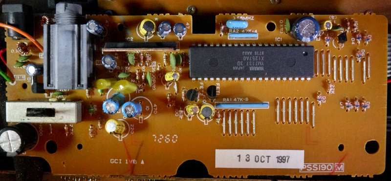 circuit bending detailsThe Yamaha PSS-16 is based on the single-chip CPU "Yamaha YM7137 3D" (crystal clocked @ 3.58 MHz) with amp IC AN7148 (12 pin SIL). The hardware of PSS-9/PSS-50 and the fullsize PSR-2/PSR-3 are more or less castrated versions of these.Also PSR 18/19 are similar, but have apparently small rom changes (CPU "YM71374E") to control an additional digital reverb chip YM7133A (LRV, with external DRAM).