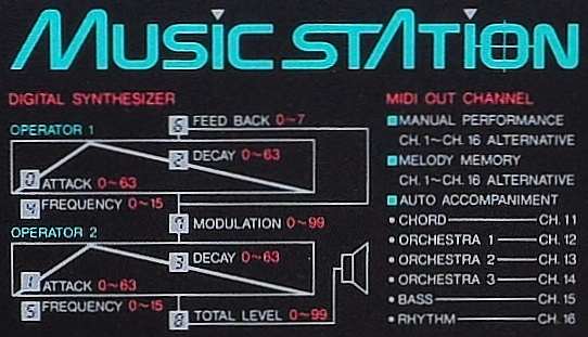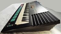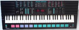 This was Yamaha's likely most advanced approach to build a professional PortaSound keyboard; this top of the line flagship of the MusicStation series from 1989 featured MIDI, a real FM synthesizer, various sequencer stuff, a programmable drum section with 8 drum pads, 61 keys and even a pitchbend wheel. (Later successors had no synthesizer anymore.) Unfortunately it also has some annoying limitations; especially the FM synthesizer lacks many sound features those were present in cheaper Yamaha keyboards, and there is also neither a modulation wheel nor is anything velocity sensitive.
