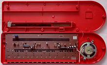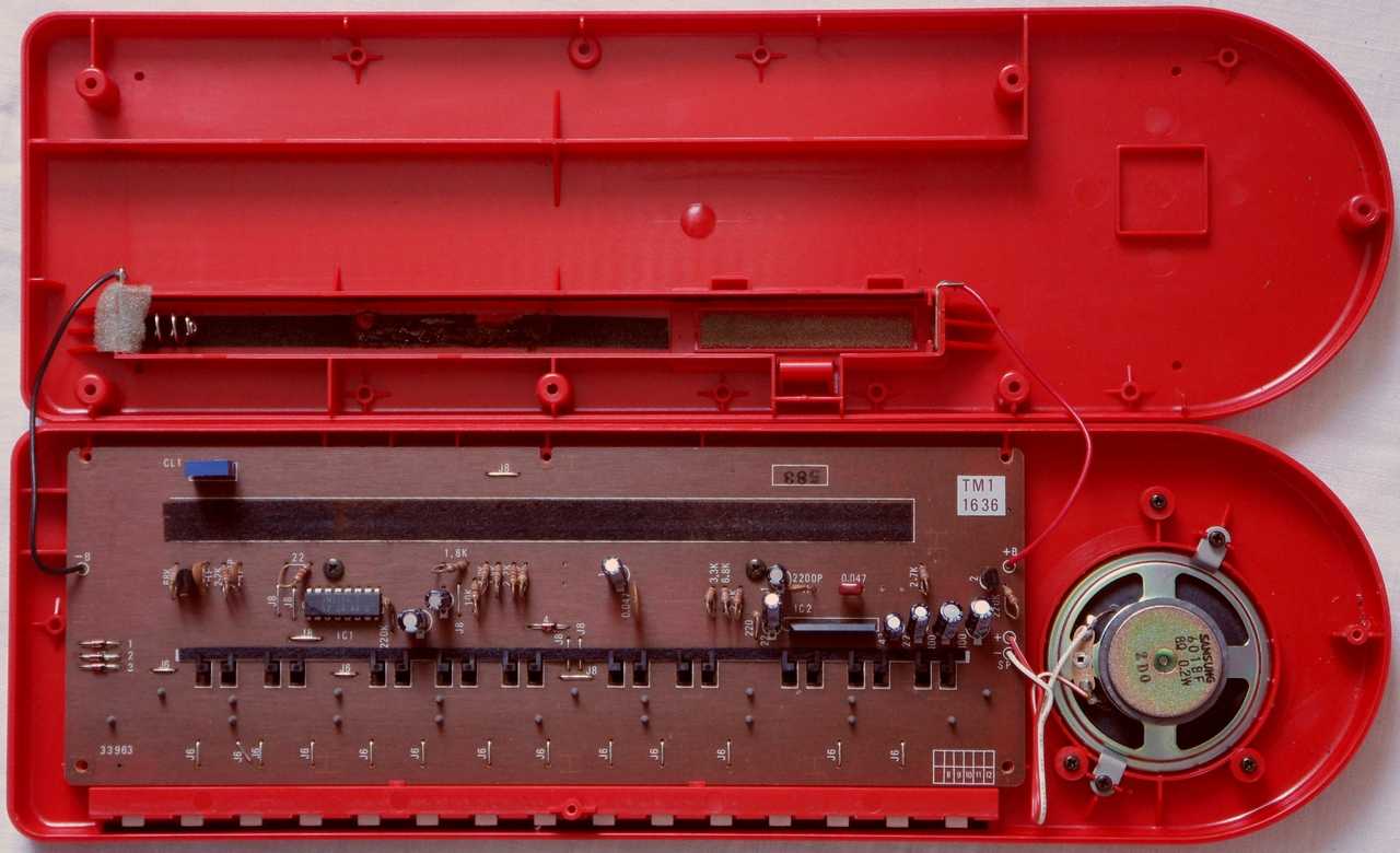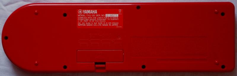 The multi-function mode slide switch is a bit hard to figure out. Particularly starting demo songs is too unintuitive for a toy; you have to hold down the corresponding white key during power-on (which is still less complicated than in the quirky TYU-30 and TYU-40), which is not even told on the control panel. With this slider you can select the 'piano' or 'do-re-mi' preset sound for the demo, which automatically switches the keys to the other sound, so you can play to them. On the slider exist 2 manual and 4 'auto play' positions, because demos can play at 2 speeds (normal is slow, 'slow' is too slow). Strangest is that the 2 'manual' positions are redundant and do exactly the same like the 'auto play' positions of the opposite name (i.e. 'piano' corresponds to 'do-re-mi'), which naming technically makes sense because keys always play the opposite sound channel of the demo. May be Yamaha wanted to suggest more functions than the simple chip actually has; printing how to select the songs would have made much more sense.